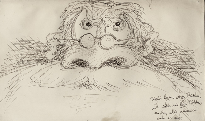 Plötzlich begann er zu brüllen, ich solle mir kein Bildnis machen, aber genau so sah er aus.