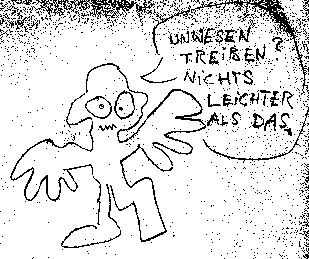 Grynzia Hahberstro (84). Läßt schön grüßen, sie hat sich einen neuen Hut gekauft. Zwanzig Jahre lang spielte sie jeden Abend außer Dienstags und Donnerstags, Molly, die zänkische alte Waldame in der Wiederaufnahme von "Whales- das gefeierte Unterwassermusical", ohne jemals auszufallen. Danach brach Ihre Revue "Nur Grynzia und zwei weitere Personen" sämtliche Rekorde. Die Filmrolle der verkannten Nachtclubsängerin Nya Zirg in "Das Leben ist ein seltsames Gebilde" war ihr auf den Leib geschrieben, und sicherte ihr Unsterblichkeit. Zuletzt glänzte sie in "Lulu- das Musical " | |